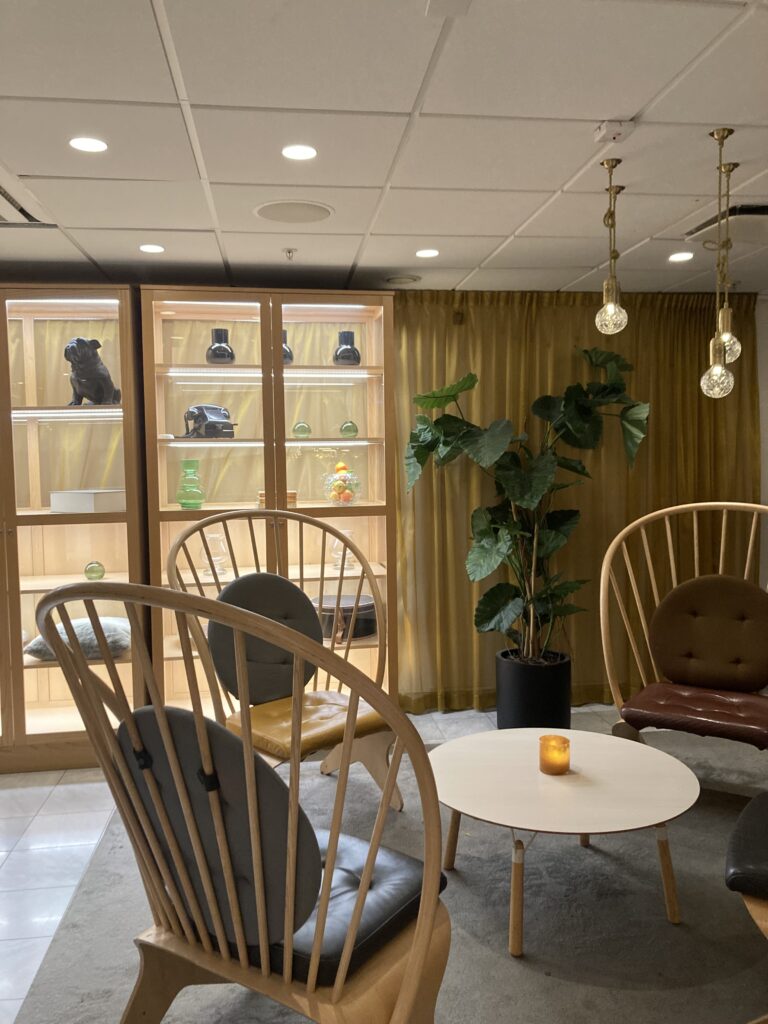 ③ホテルに到着。ロビーのインテリアもスカンジナビアスタイル。