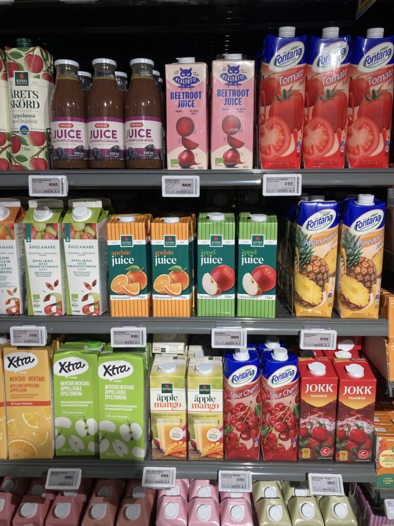 ⑦スーパーにて。リンゴジュース🧃をスウェーデン語で注文するのがまず目標。